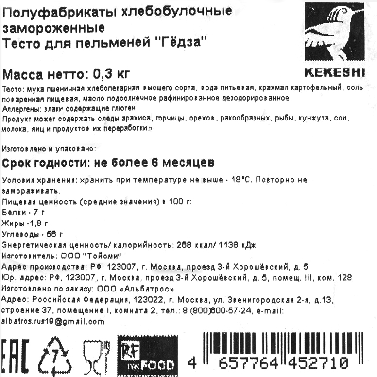 Тесто для пельменей Гёдза замороженное, 40 листов, Kekeshi Resfood, 300 г