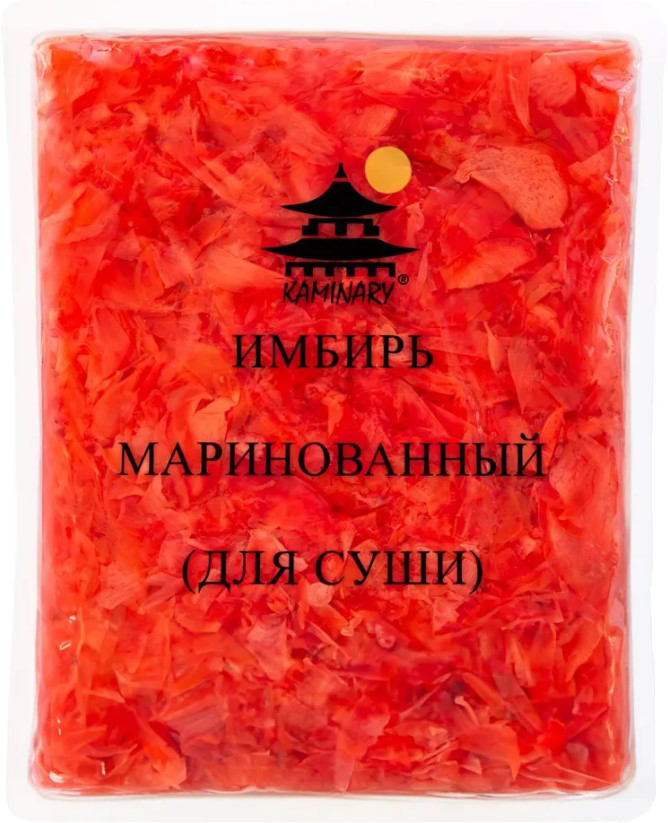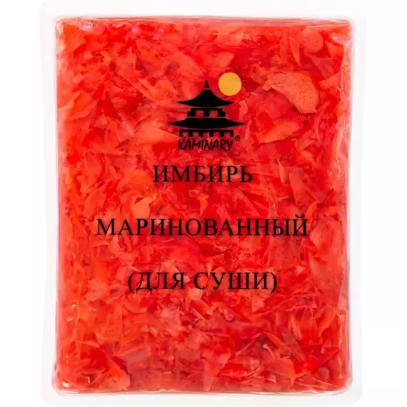 Имбирь маринованный розовый используется как дополнение к суши, роллам и сашими. Маринованный имбирь едят между употреблением блюд для очистки вкусовых рецепторов.