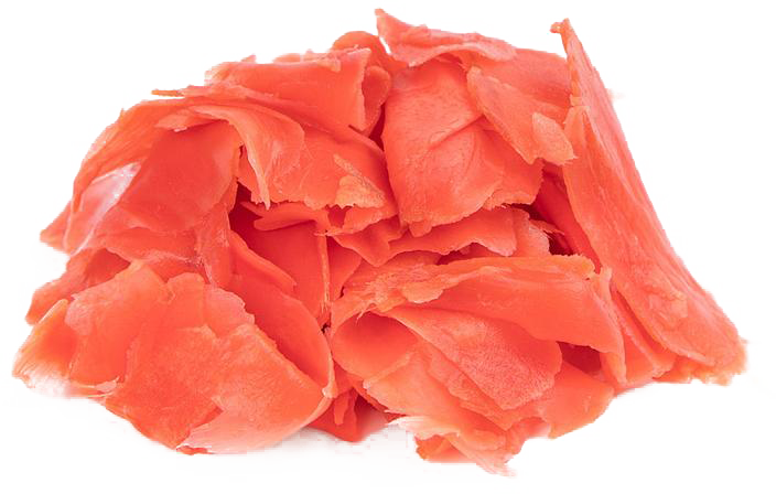 Имбирь маринованный розовый используется как дополнение к суши, роллам и сашими. Маринованный имбирь едят между употреблением блюд для очистки вкусовых рецепторов.