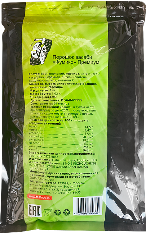 Порошок васаби Фумико Premium Genso 90/10 %, 1 кг